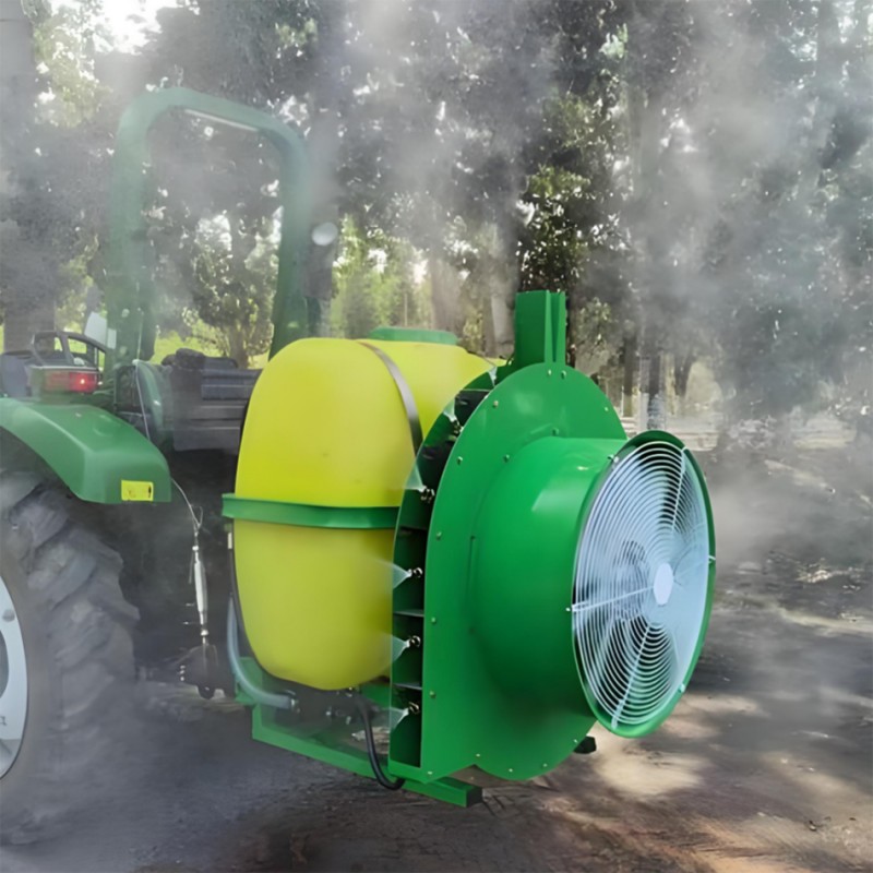 Máy phun vườn gắn là một máy lớn thích hợp để phun thuốc trừ sâu vào vườn cây lớn. Nó có những ưu điểm của chất lượng phun tốt, sử dụng thuốc trừ sâu thấp, sử dụng nước thấp và hiệu quả sản xuất cao. Hơn nữa, nó không chỉ dựa vào áp lực của bơm lỏng để nguyên tử hóa thuốc lỏng, mà dựa vào quạt để tạo ra một luồng không khí mạnh để thổi các giọt vào các phần khác nhau của cây ăn quả. Luồng khí tốc độ cao của quạt giúp các giọt nước xâm nhập vào các nhánh dày đặc và lá của cây ăn quả, và cũng khiến lá bị lật, làm tăng tốc độ bám dính của thuốc lỏng mà không làm hỏng các nhánh của cây ăn quả hoặc trái cây.